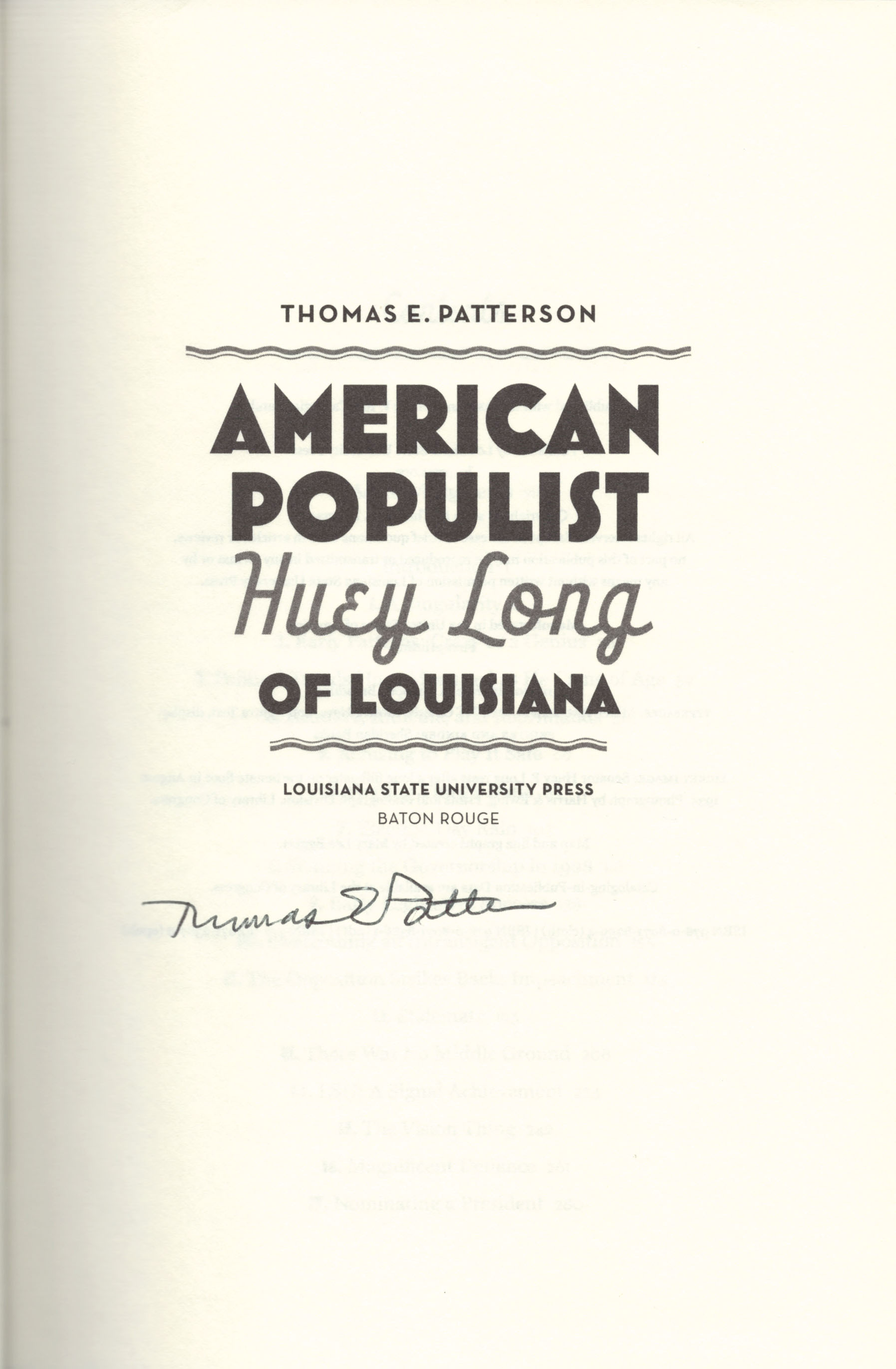 AMERICAN POPULIST: HUEY LONG OF LOUISIANA corrects many of the myths surrounding the man many consider America's top politician of the twentieth century. Thomas Patterson's monumental work makes use of previously untapped personal papers and the author's expertise as an attorney to deconstruct the elements of one of the the foundations of The Kingfish's success, his law practice. This is the most balanced and comprehensive biography to date. It is a must to complete any serious modern-day book collection.