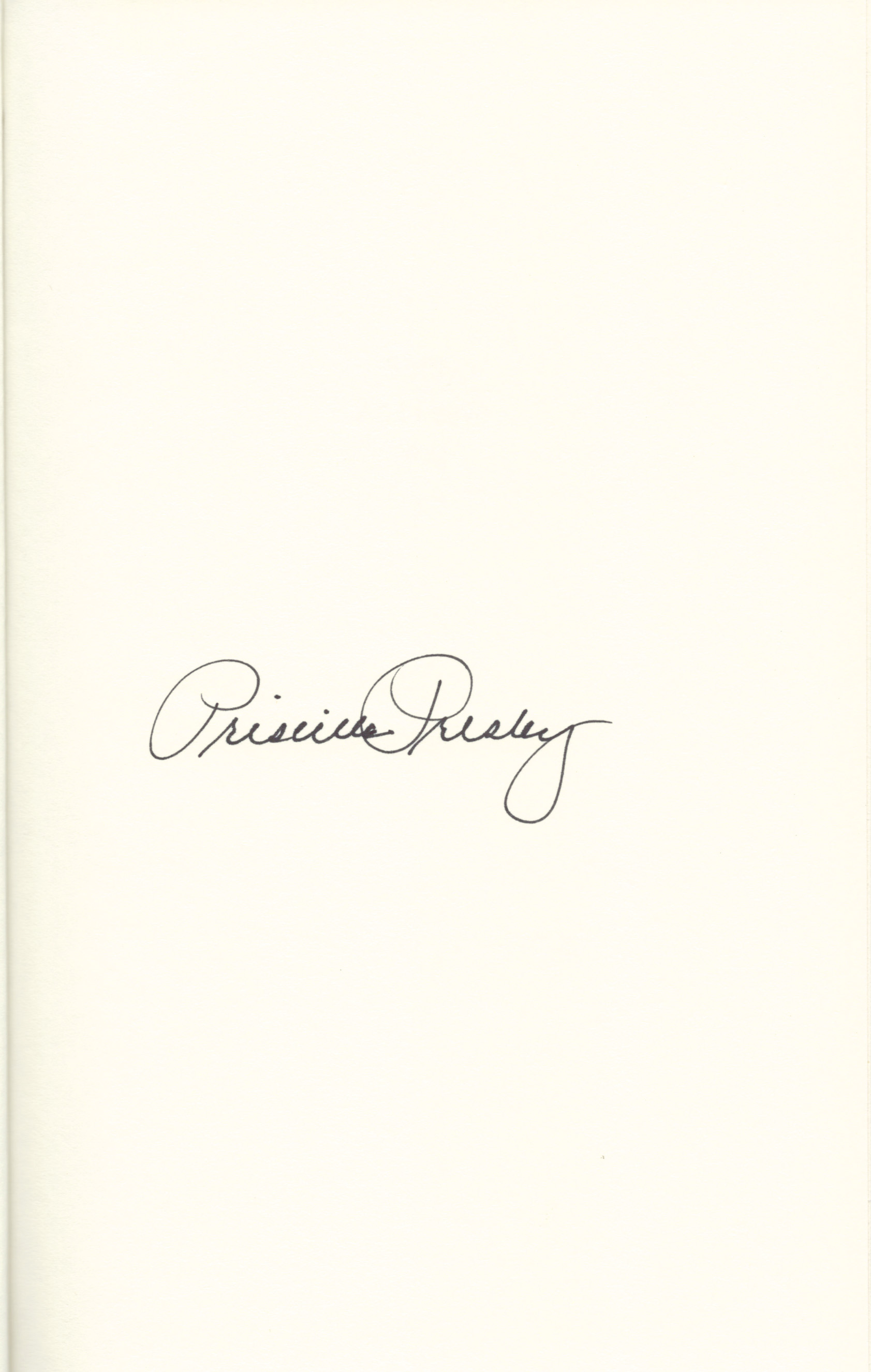 THIS COPY (shown below) was hand signed by Priscilla Presley on a page bound into the book. It is a new, unread, unopened first edition hardback and comes with a certificate authenticating the signature. Published in September, 2025 by Grand Central, an imprint of The Hachette Book Group.