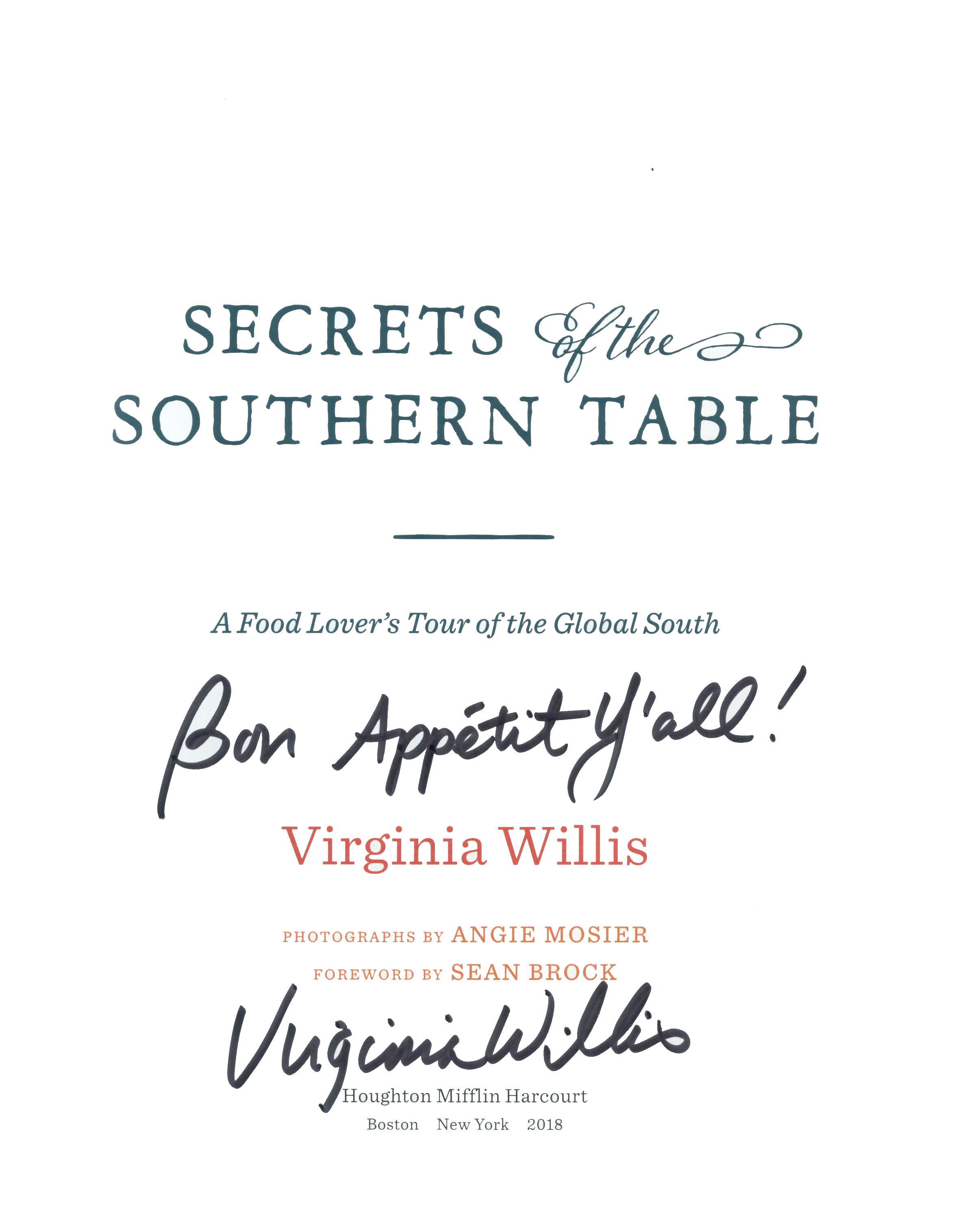 THIS COPY (shown below) was hand signed by Virginia Willis on the title page at the store. It is a new, unread first edition opened only for signing and comes with a certificate authenticating the signature. Published in May, 2018 by Hougton Mifflin Harcourt.