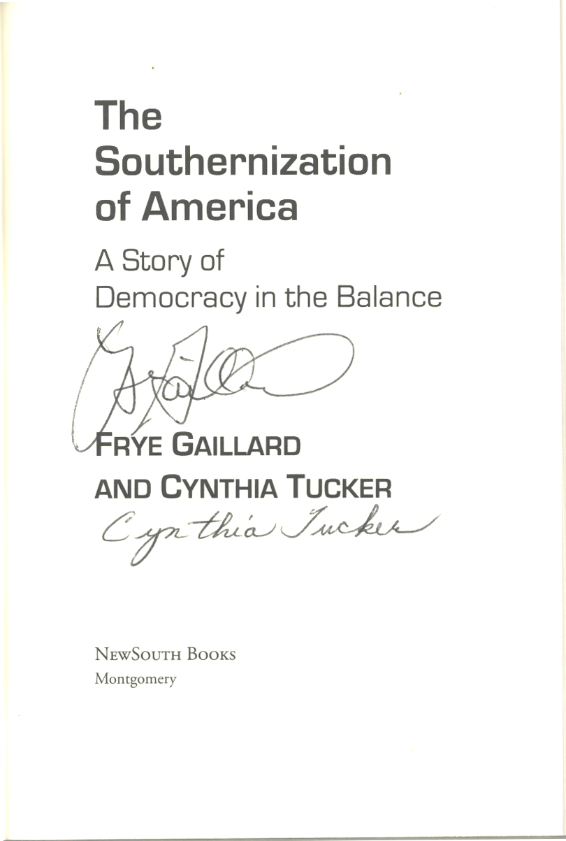 THIS COPY (shown below) was hand signed on the title page by Cynthia Tucker and Frye Gaillard at the store during the national launch. It is a new, unread first edition opened only for signing and comes with a certificate authenticating the signature. Published in March, 2022 by New South Books.
